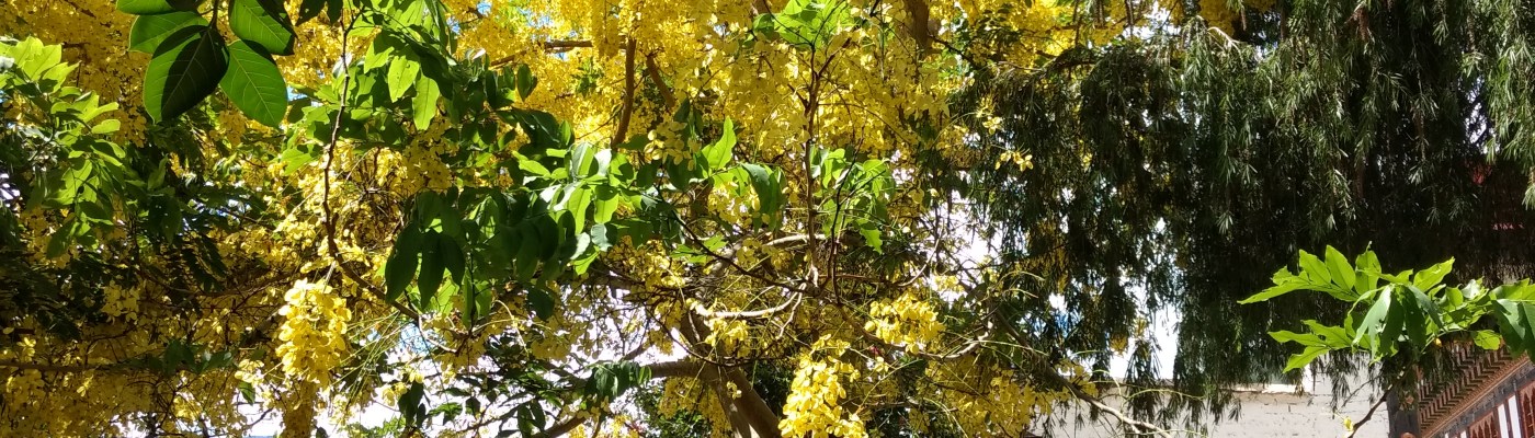 After a while it was time to leave. I hiked through a shortcut through the fields that would take me back to the main road. I managed to hitch another ride up the valley to the Punakha Dzong with some musicians who didn’t stop singing the whole way. The Punakha Dzong according to the locals, is the King’s favourite palace. It was really pretty too, set on the conjunction of two rivers. Trees with flowers of all colours covered the place.